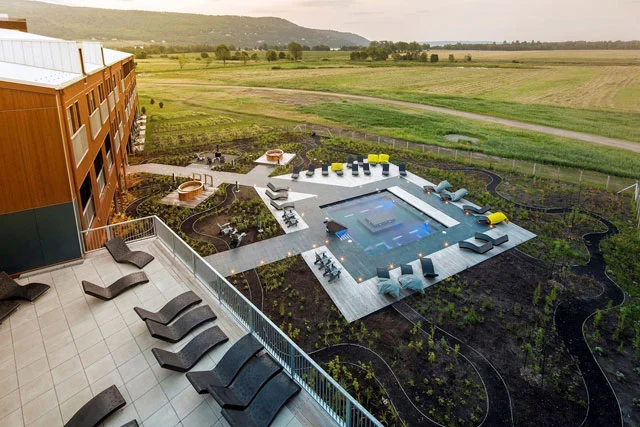Set between the St. Lawrence River and rolling mountains, Le Germain Charlevoix blends eco-conscious design with boutique hotel charm. Built on the site of a former farm, the property features timber, steel, and glass construction that pays…